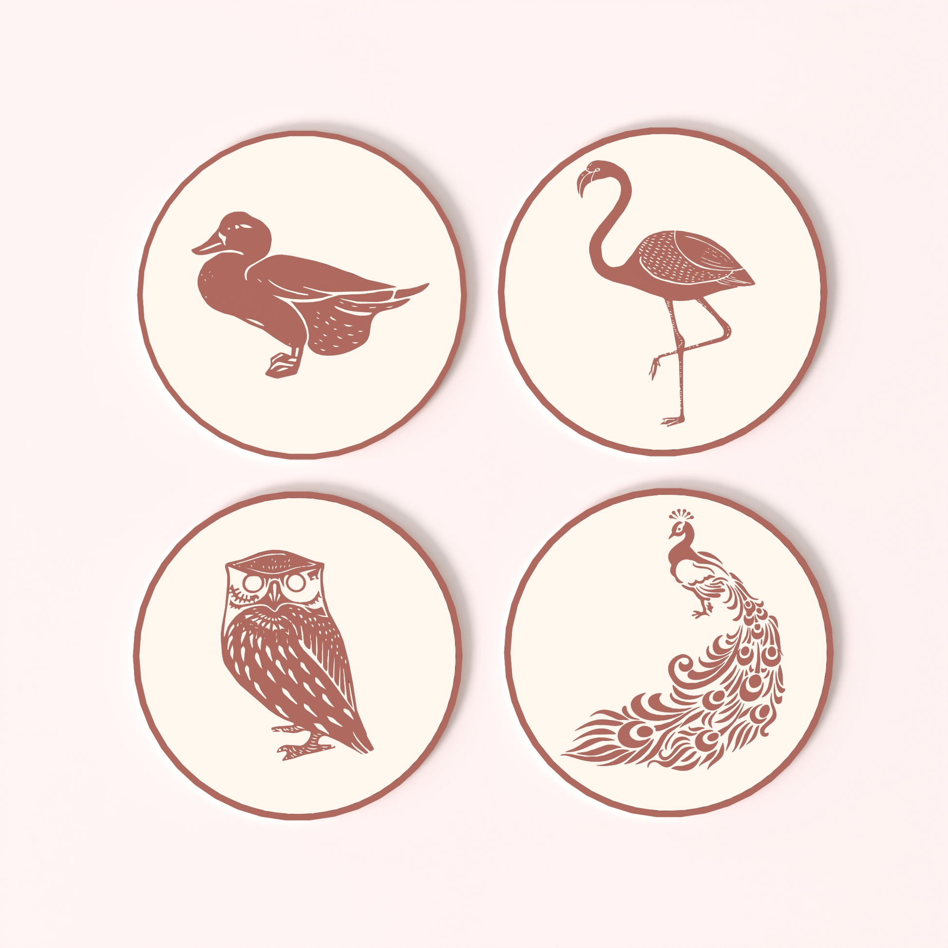 The set includes four uniquely designed coasters, each featuring a different bird along with a Coaster Holder to keep it organised.