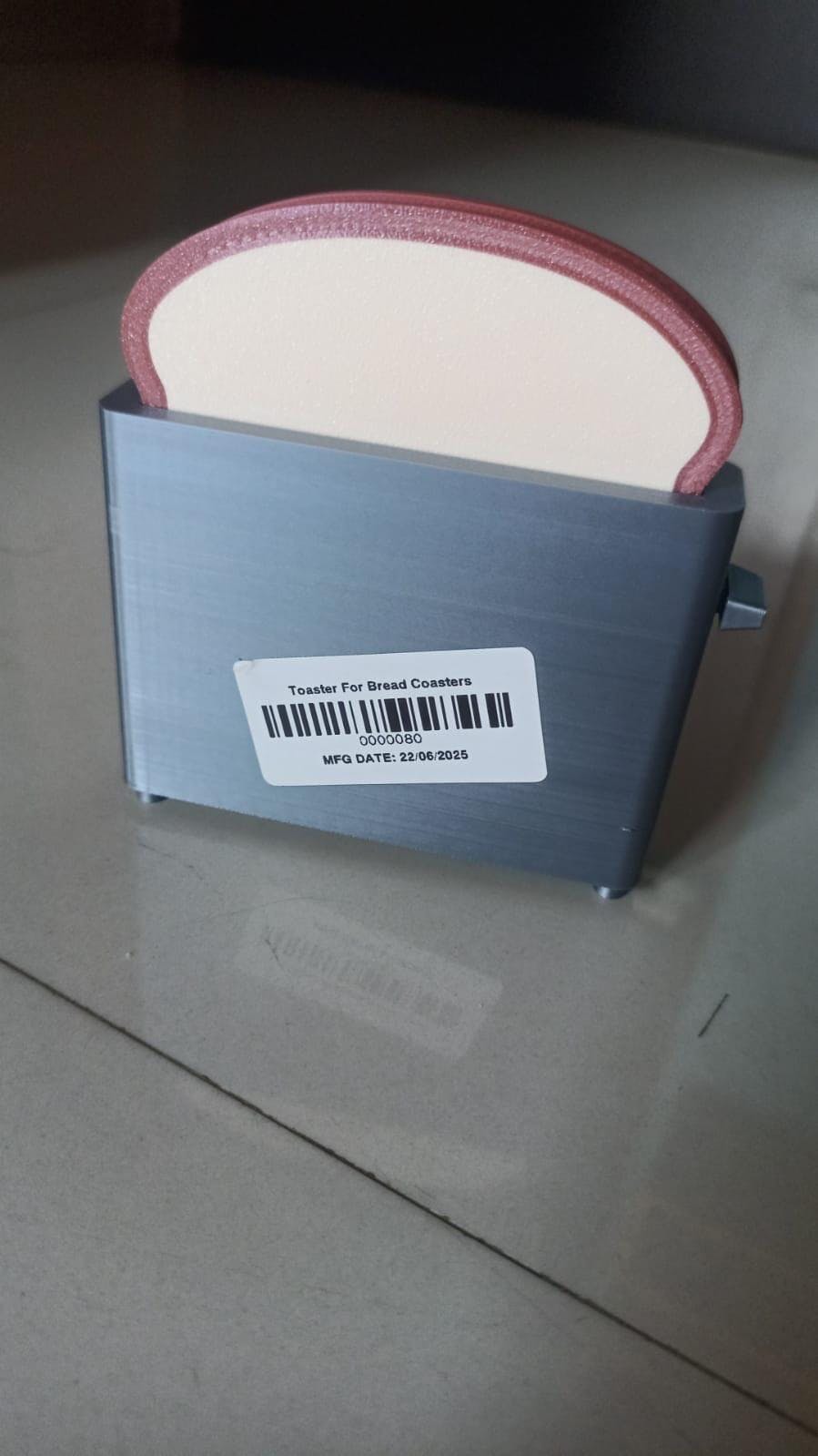 Crafted with care using high-quality 3D printing, the holder is modeled to resemble a classic pop-up toaster – complete with a lever on the side. The warm bread-like color of the coasters pairs beautifully with the minimal matte finish of the holder, making it both quirky and stylish.
